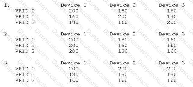 Which VRID priority scheme will implement an Active-Active-Active VRRP-A deployment with three ACOS devices?