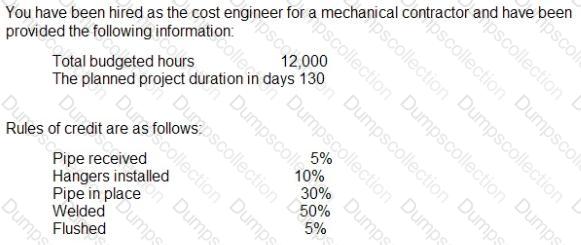 A total of 100.000 work hours have boon scheduled to date. with 105.000 work hours earned, and 110.000 work hours paid. The stated progress by the contractor Is 60%.