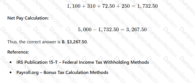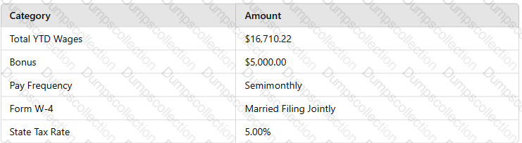 An exempt employee is being paid an annual discretionary bonus. The employee has submitted a 2020 W-4. Calculate the net pay based on the following information: