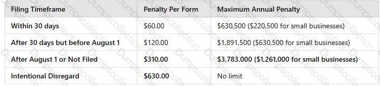 When an information return is filed after August 1st of the same year, the penalty amount per form is: