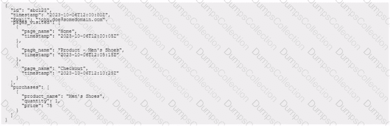 A retail organization is Introducing an e-commerce channel and would like to integrate the customer's browsing and online purchase data into the Real-Time Customer Profile The data structure of the clickstream event being captured is as follows: