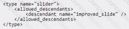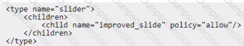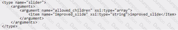 An Adobe Commerce developer has been asked to modify the PageBuilder slider content type to allow a new custom content type (other than slide) to be assigned as a child. The developer has already created the new content type called improved_slide in their module. They now need to create a new view/adminhtml/pagebuilder/content_type/slider. xml file in their module to allow the new content type to be a child of slider content types.