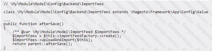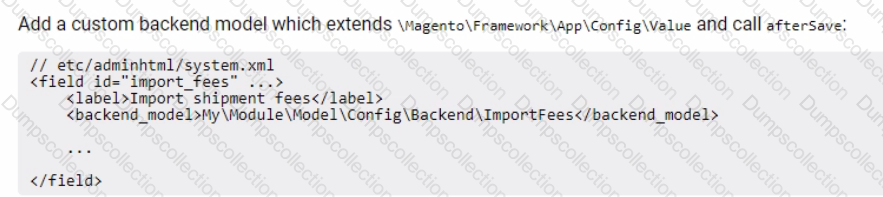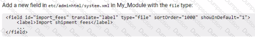 A logistics company with an Adobe Commerce extension sends a list of reviewed shipment fees to all its clients every month in a CSV file. The merchant then uploads this CSV file to a "file upload" field in admin configuration of Adobe Commerce.