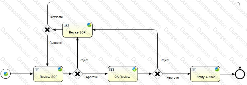 In the workload pictured, which sequence flows will be taken after the QA Review is complete?