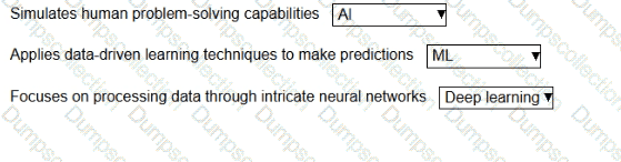 Select the correct AI term from the following list for each statement. Each AI term should be selected one time. (Select THREE.)