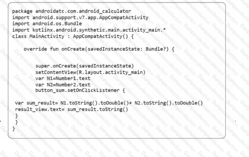 Check the following image which includes Android code for a sum calculator. Which of the following choices is correct about this Android code?