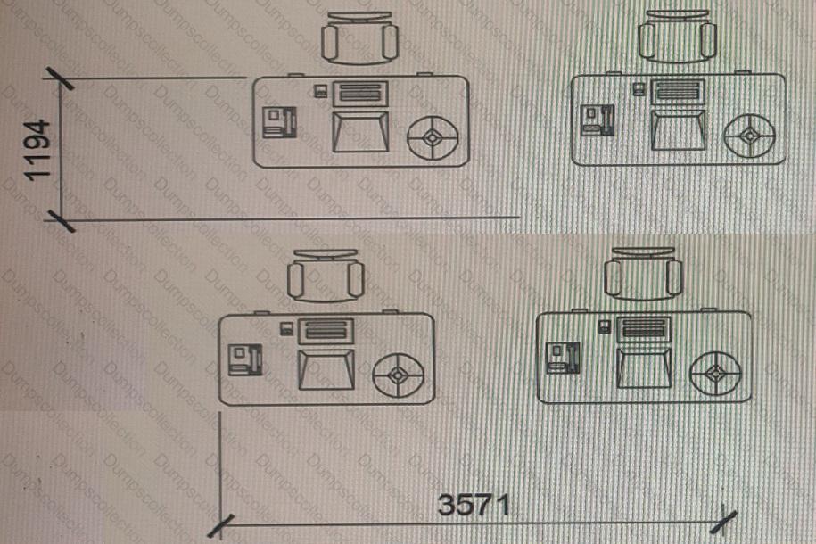 The exhibit shows a workstation arrangement, with horizontal and vertical dimensions, representing the row and column spacings.