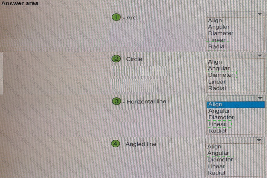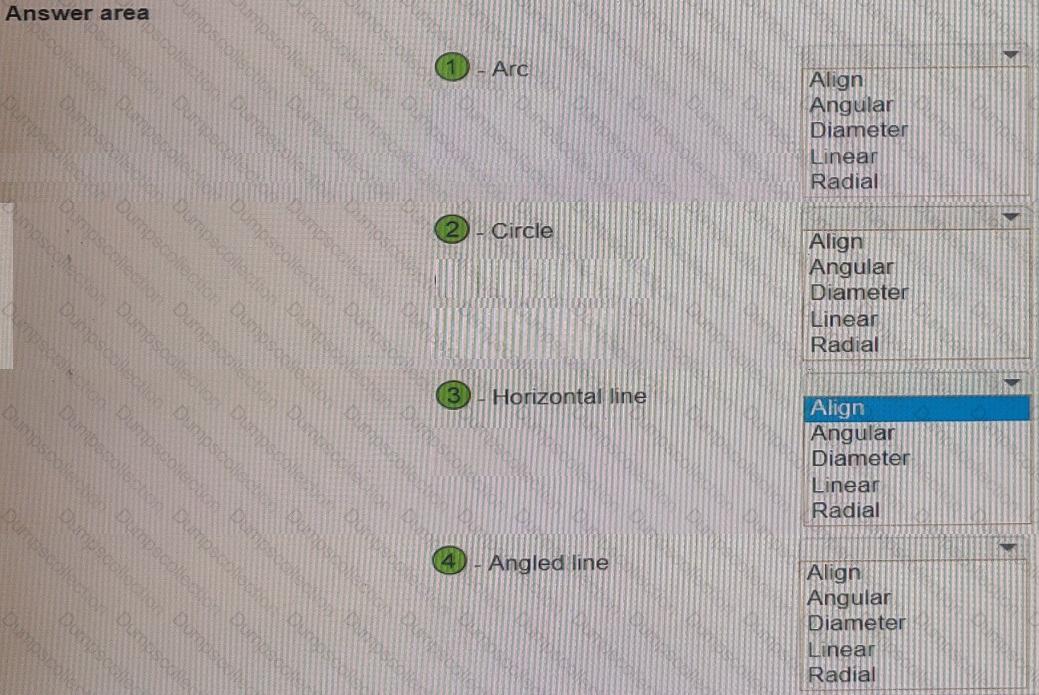 Which dimension type will appear when you hover over each object? Select the appropriate dimension type from each of the drop-down lists.