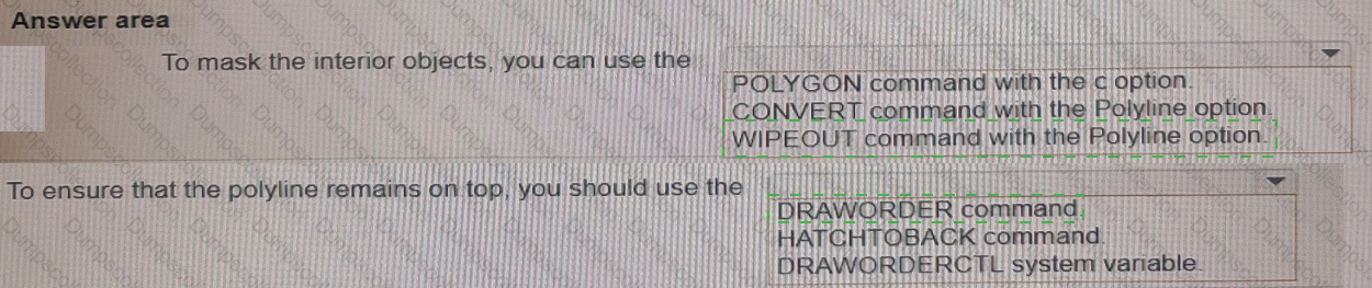 [Note: Exhibit shown is the AutoCAD interlace in Windows. While the AutoCAD for Mac version differs in appearance, the correct answers correlate in the options.]