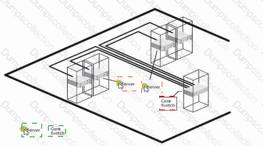 Identify the core switch(es) and server(s) of the data center in the diagram below by dragging the appropriate term into each box in the diagram.