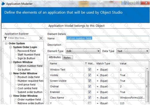 When entering an option within the Training Order system the relevant option number is entered into the Option number field as below The Option number input field has been spied in Blue Prism: