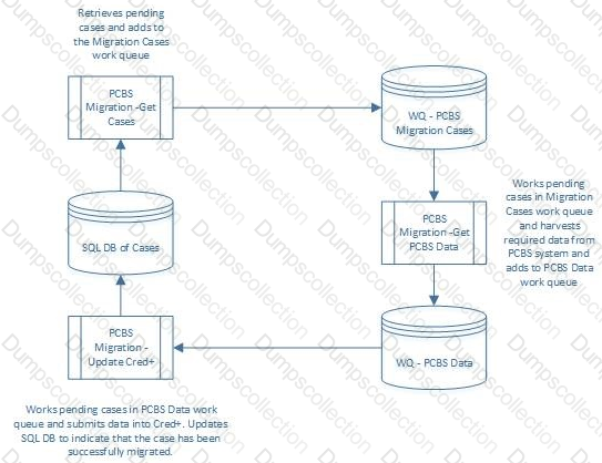 Which of the following statements about using Work Queue designs to split a business process into a multi part robotic solution is correct?