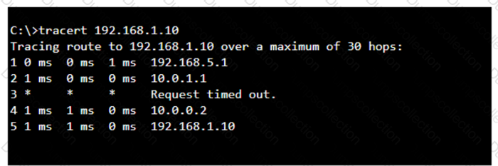A user reports that a company website is not available. The help desk technician issues a tracert command to determine if the server hosting the website is reachable over the network. The output of the command is shown as follows: