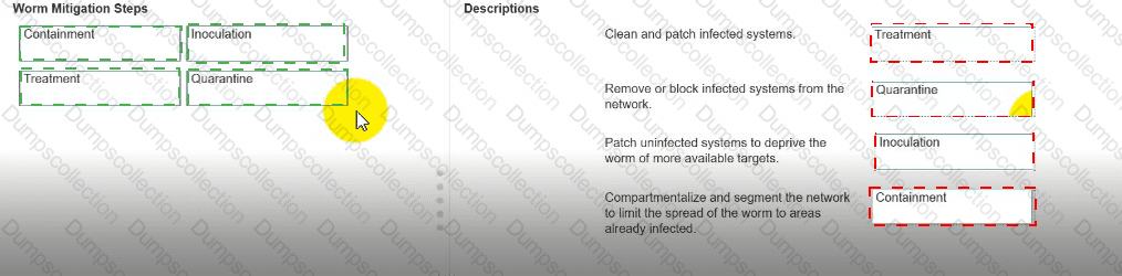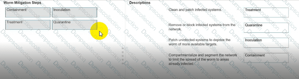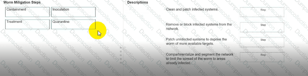Move each worm mitigation step from the list on the left to the correct description on the right.
