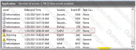 You are reviewing the Application log on a Windows computer. You see an event with an error-level message as shown.