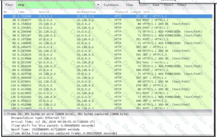 An engineer received a ticket about a slowdown of a web application, Drug analysis of traffic, the engineer suspects a possible attack on a web server. How should the engineer interpret the Wiresharat traffic capture?