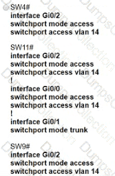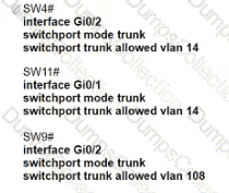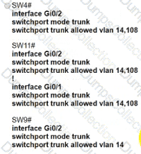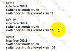 • The SW4 interface Gi0/1 and Gi0/0 on SW9 have been configured
