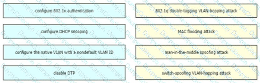 Drag and drop the attack-mitigation techniques from the left onto the Types of attack that they mitigate on the right.