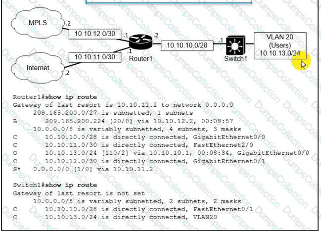 Router R1 resides in OSPF Area 0. After updating the R1 configuration to influence the paths that it will use to direct traffic, an engineer verified that each of the four Gigabit interfaces has the same route to 10.10.0.0/16. Which interface will R1 choose to send traffic to reach the route?