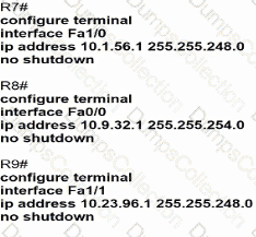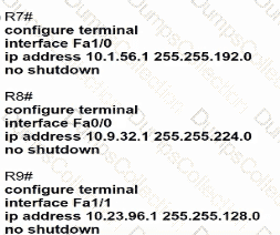 An IP subnet must be configured on each router that provides enough addresses for the number of assigned hosts and anticipates no more than 10% growth for now hosts. Which configuration script must be used?