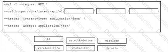Drag and drop the code from the bottom onto the blanks in the code to construct a cURL command using the Cisco DNA Center API. which will provide the details of a WLAN controller with Id af397748444. Not at options are used.