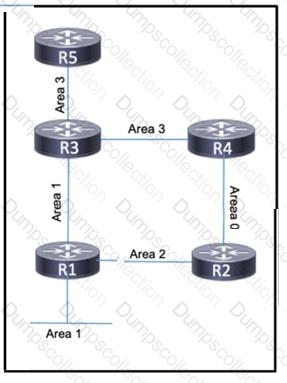 OSPF is running in the network, which spans multiple areas as shown, and all OSPF neighbors are established. Hosts that reside on the LAN on R1 are trying to reach a server connected to R5, but R1 cannot reach the R5 routes. The server must maintain a TCP connection with the hosts. Which action must the engineer take to resolve the issue?