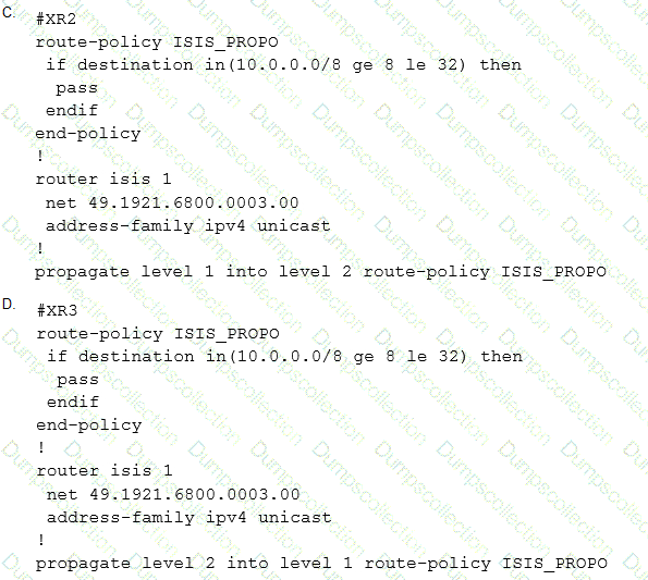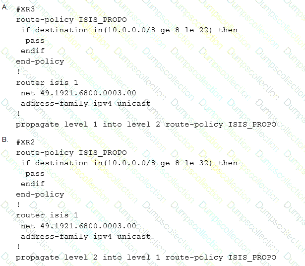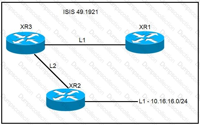 A network operator must inject a Level 1 route from XR2 (10.16.16.0/24) into the ISIS