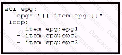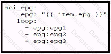Which iteration creates three EPGs in Cisco ACI using an Ansible task? Some required aci_epg task attributes have been omitted for brevity.