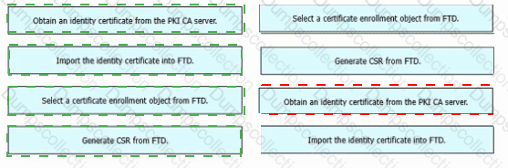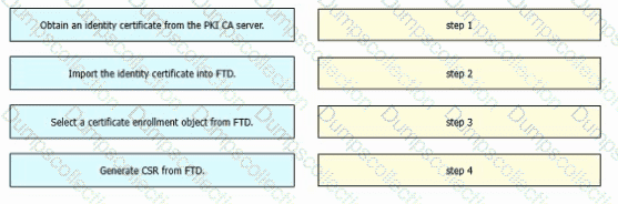 An engineer must configure certificate-based authentication in a cloud-delivered Cisco Secure Firewall Management Center. Drag and drop the steps from left to right to manually enroll certificates on a Cisco Secure Firewall Threat Defense Virtual device.