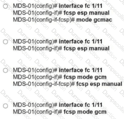 A storage engineer must configure Cisco TrustSec Fibre Channel by using manual ESP mode on a Cisco MDS 9000 Series Switch. ESP mode must use the default message authentication and encryption method. Which configuration must the engineer apply on the switch to complete the configuration?