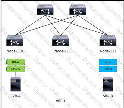Refer to the exhibit. SVR-A in EPG-A/BD-A fails to reach SVR-B in EPG-B/BD-B. Which two conditions should be verified to analyze the traffic between the two EPGs? (Choose two.)