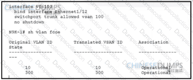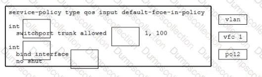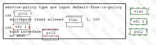 Refer to the exhibit. An engineer configures FCoE in a newly installed data center Which configuration must be applied to activate VSAN 100 on VFC 100?