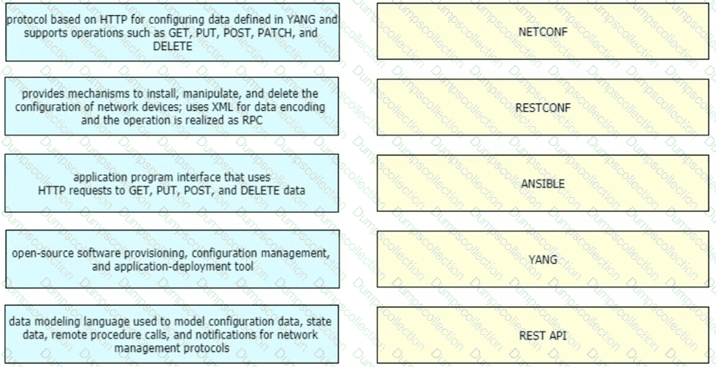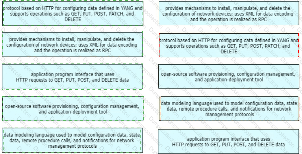 Drag and drop the characteristics from the left onto the corresponding network management options on the right.