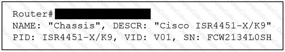 Refer to the exhibit. Which CLI show command identifies the serial number on a router?