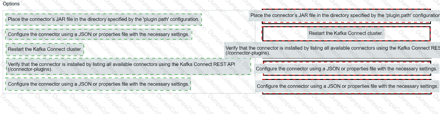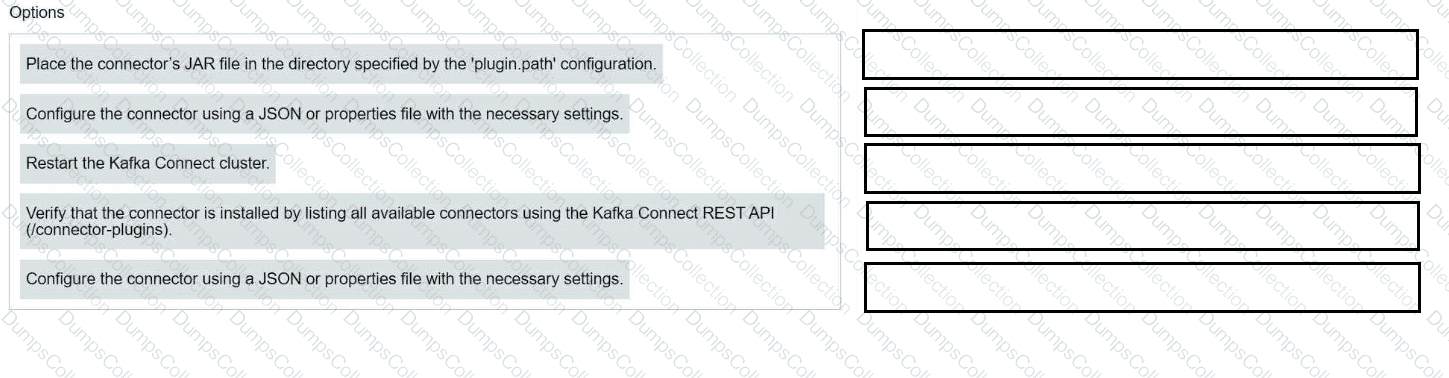 Match each configuration parameter with the correct deployment step in installing a Kafka connector.