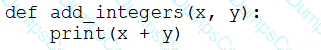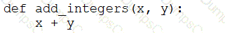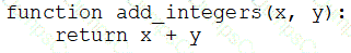 A data engineer that is new to using Python needs to create a Python function to add two integers together and return the sum?
