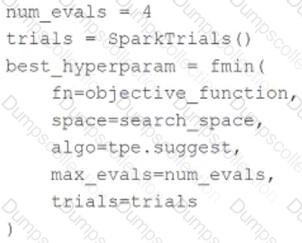 A data scientist is using the following code block to tune hyperparameters for a machine learning model: