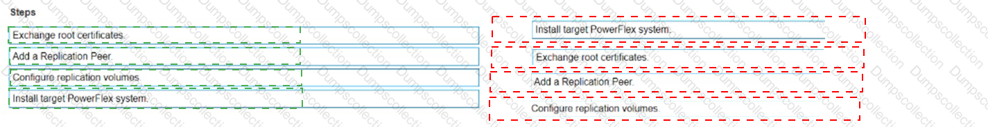 Place the steps to set up remote replication on the Powerflex system in the correct order