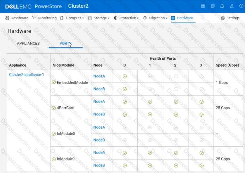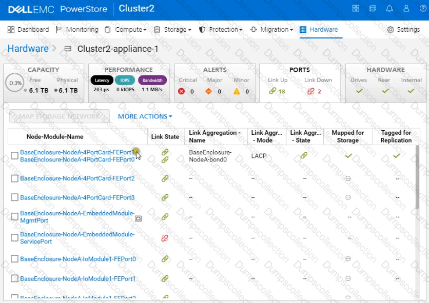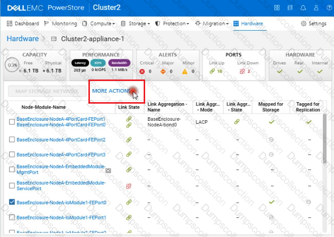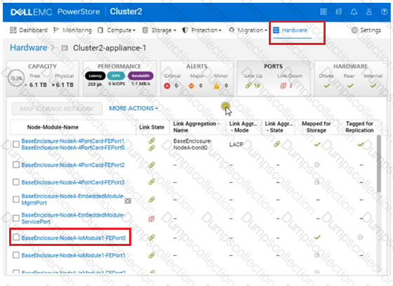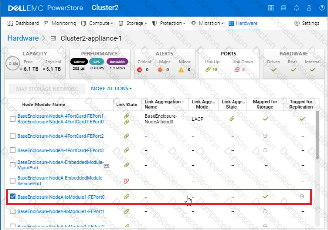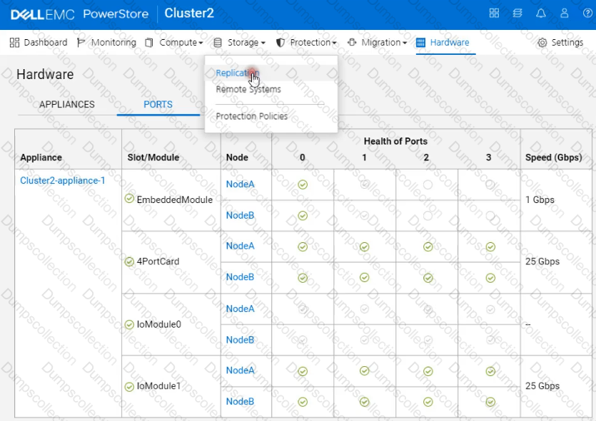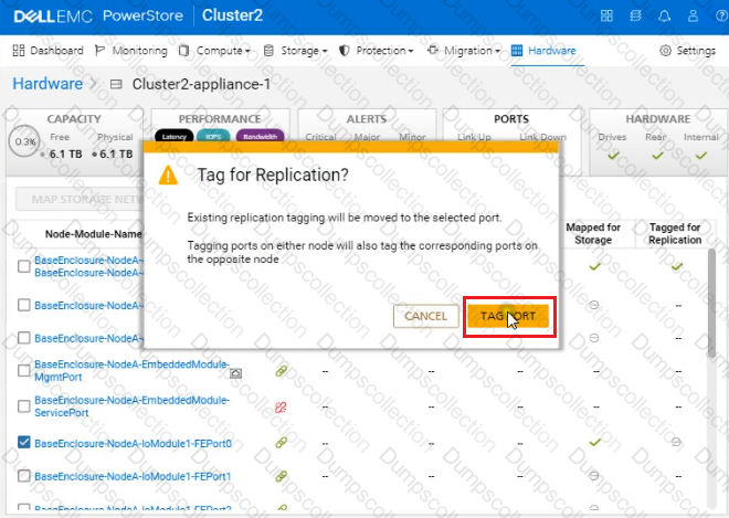 Use the PowerStore Manager simulator to configure the BaseEnclosure-NodeA-IoModule1-FEport0 as a replication port. When you have finished using the simulator, Click Next.