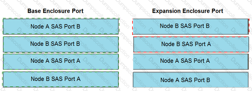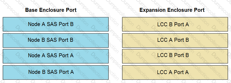 Match the correct Base Enclosure port in column A to the Expansion Enclosure port in column B to show the correct cabling for adding a single expansion enclosure to a base enclosure.