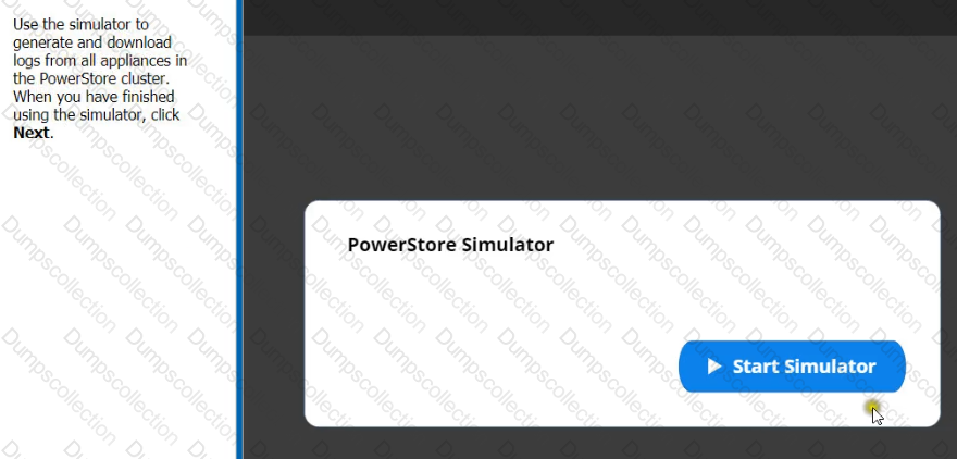 Use the simulator to generate and download logs from all appliances in the PowerStore cluster. When you have finished using the simulator, Click Next.
