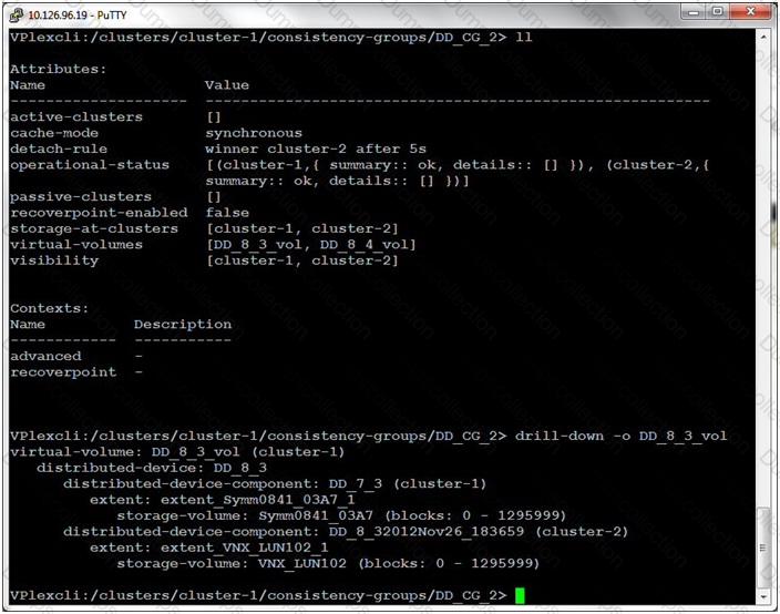 You have created a Distributed Device in a VPLEX Metro. You want to confirm you have chosen the correct volumes before performing a mobility job across clusters. You will be moving the device to cluster 1.