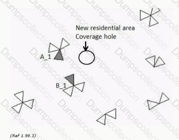 A new residential area has recently been built showing a lack of 3G uplink coverage as shown in the exhibit. The terrain is flat and all the buildings in the area are 20 meters in height with no other relevant direct obstacles.