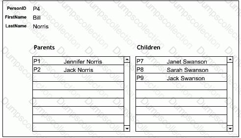 You want to build the system in such a way that a single layout showing information about a person can also display two portals, one showing the names of all of the current person's children (if any) and the other showing the names of all of the current person's parents (if known).