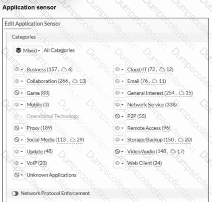 You have implemented the application sensor and the corresponding firewall policy as shown in the exhibits.