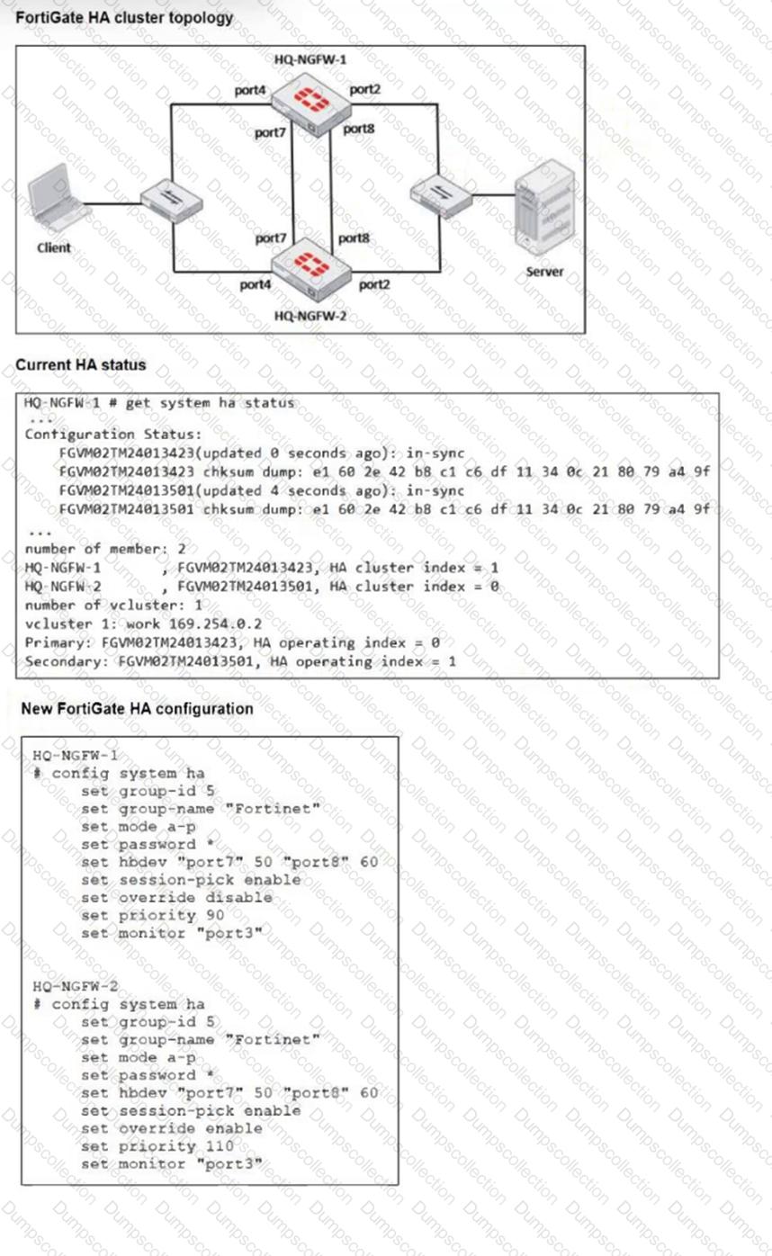 Based on the current HA status, an administrator updates the override and priority parameters on HQ-NGFW-1 and HQ-NGFW-2 as shown in the exhibit.