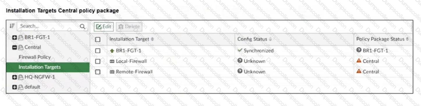 An administrator has been asked to install the same policies from a central policy package onto the BR1-FGT-1 firewall.