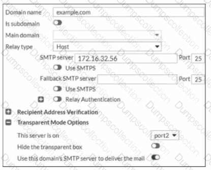 Refer to the exhibit, which displays the domain configuration of a FortiMail device running in transparent mode.