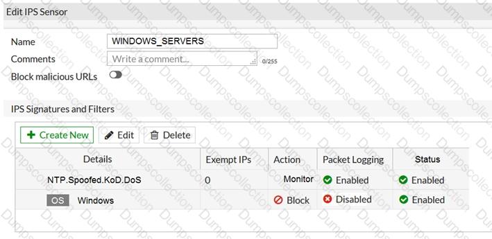 If traffic matches this IPS sensor, which two actions is the sensor expected to take? (Choose two.)