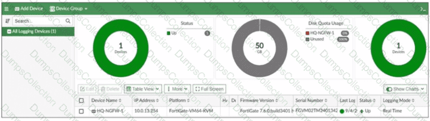 The FortiGate device HQ-NGFW-1 with the IP address 10.0.13.254 sends logs to the FortiAnalyzer device with the IP address 10.0.13.125. The administrator wants to verify that reliable logging is enabled on HQ-NGFW-1.